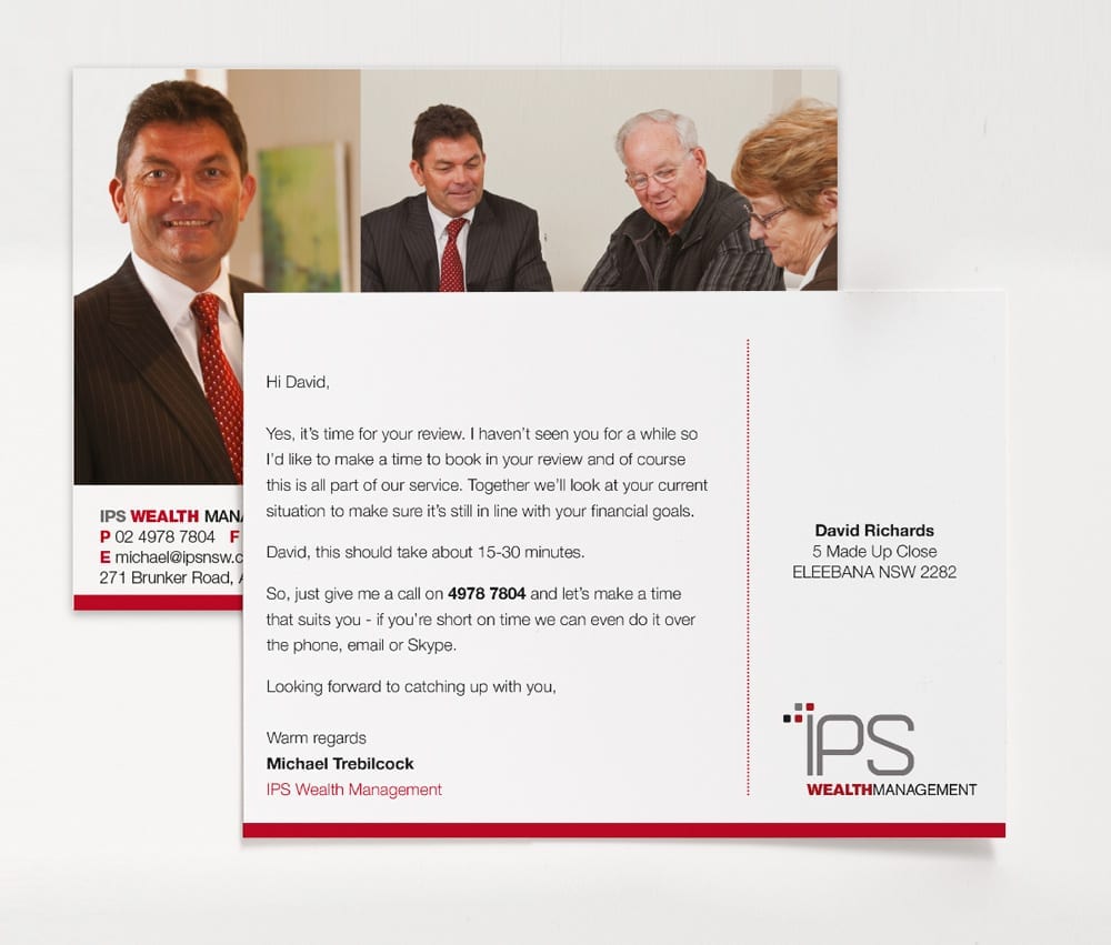 We do all the hard work for you, and at a very reasonable price! Price includes high-quality stock and full-colour printing, addressing, postage and mailing directly to your customers utilising a database you email to us.